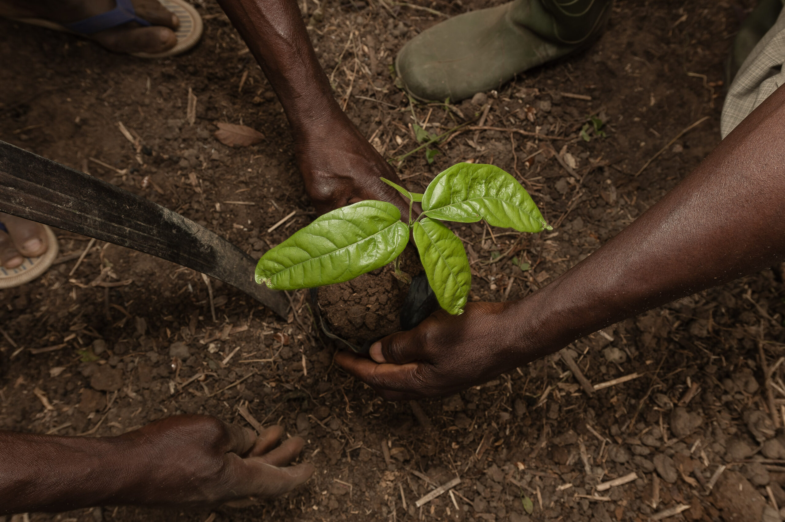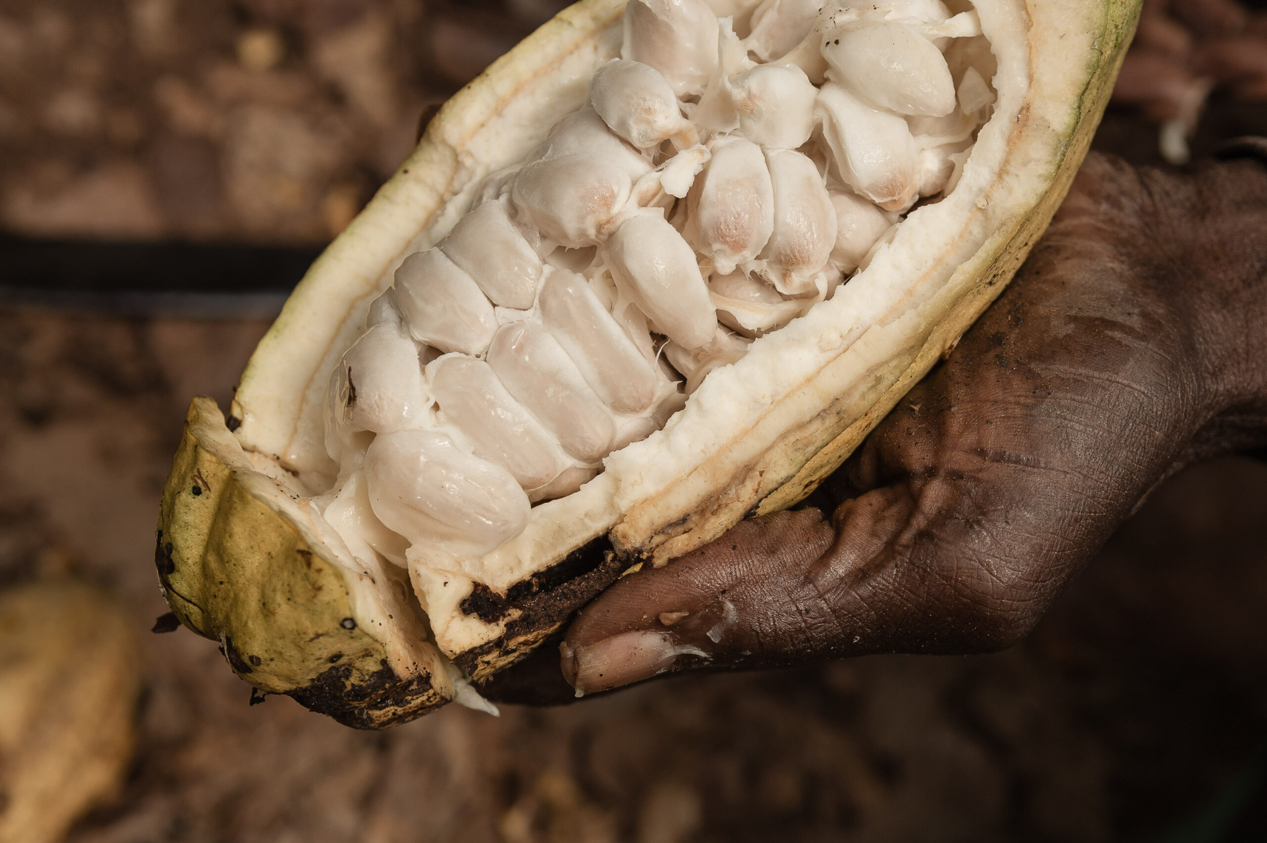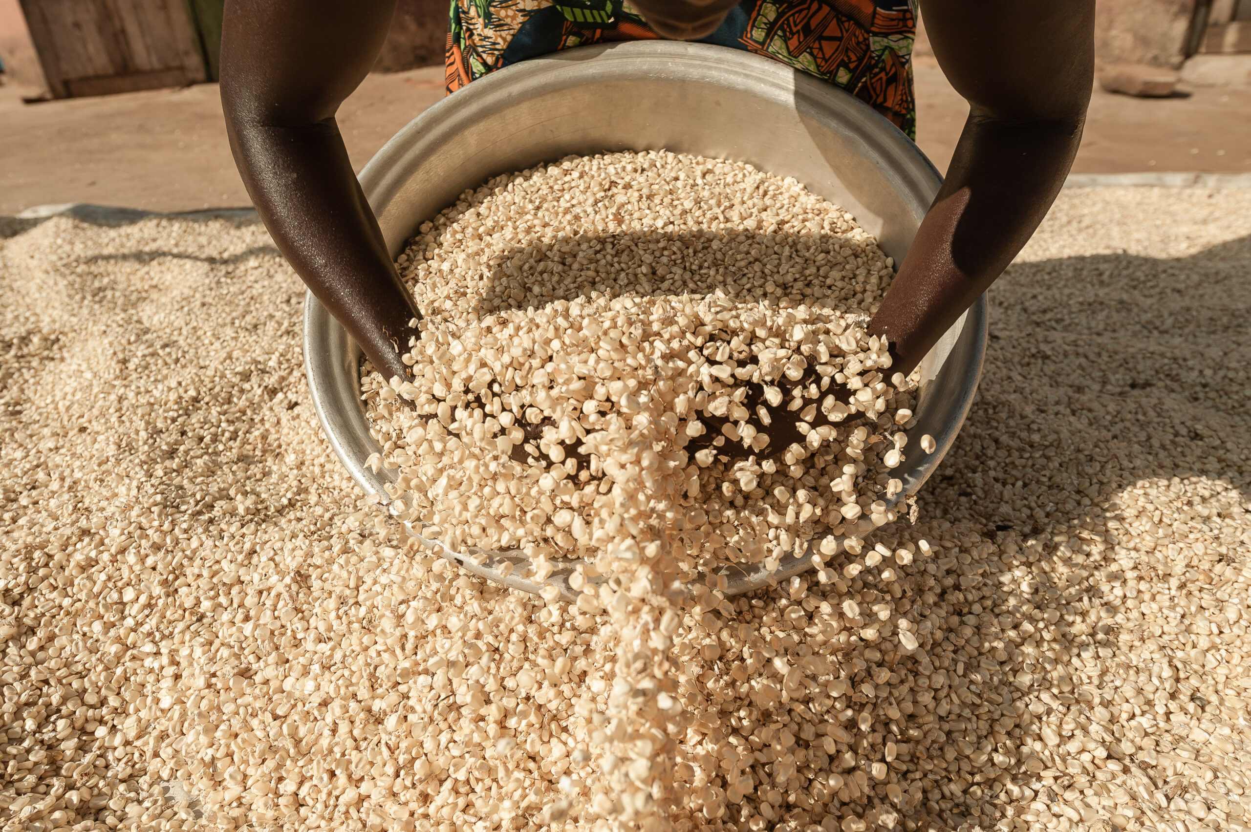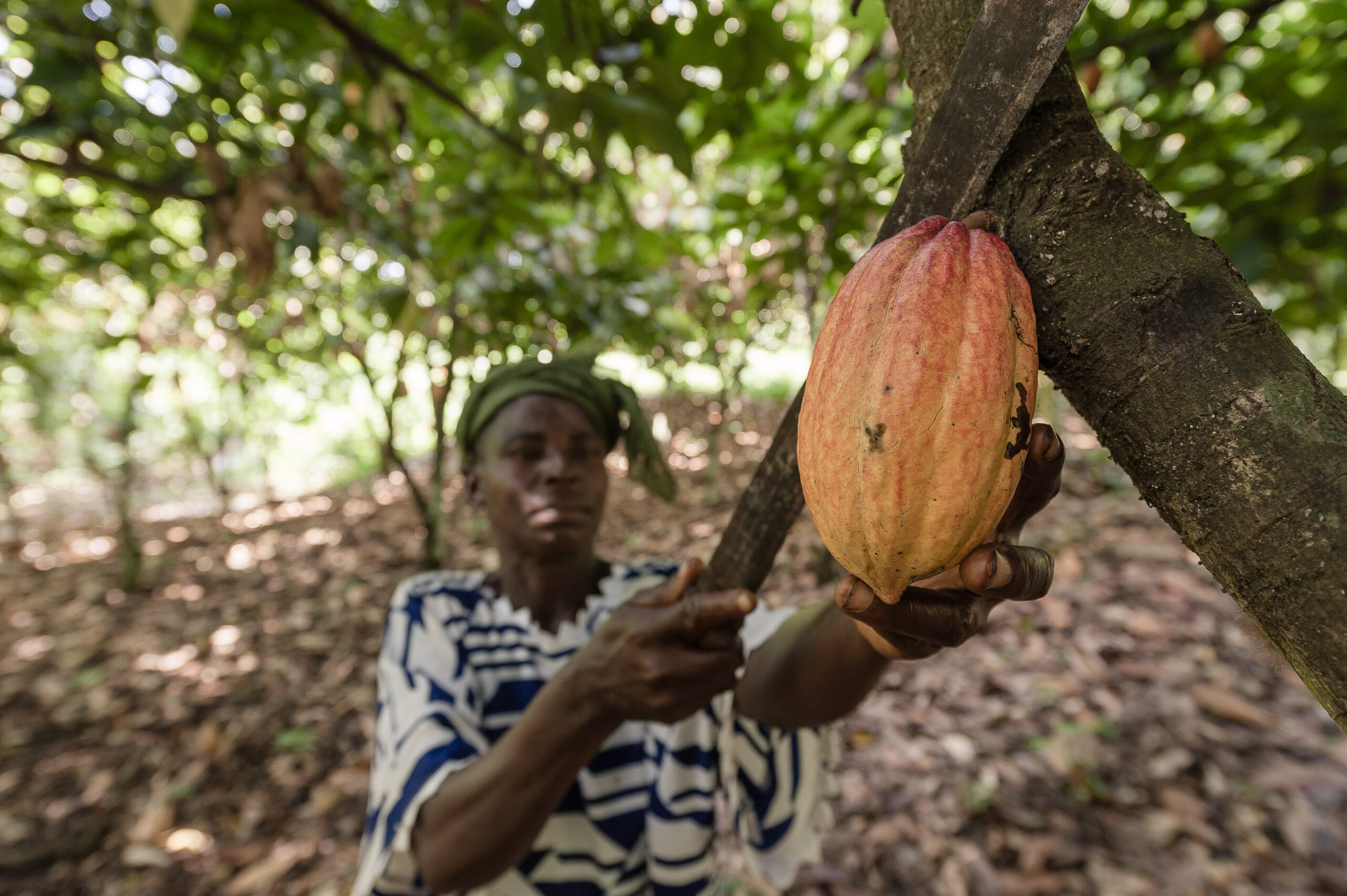 The images were taken in Côte d'Ivoire and Ghana depicting the cultivation and processing of cocoa, coffee, and maize.